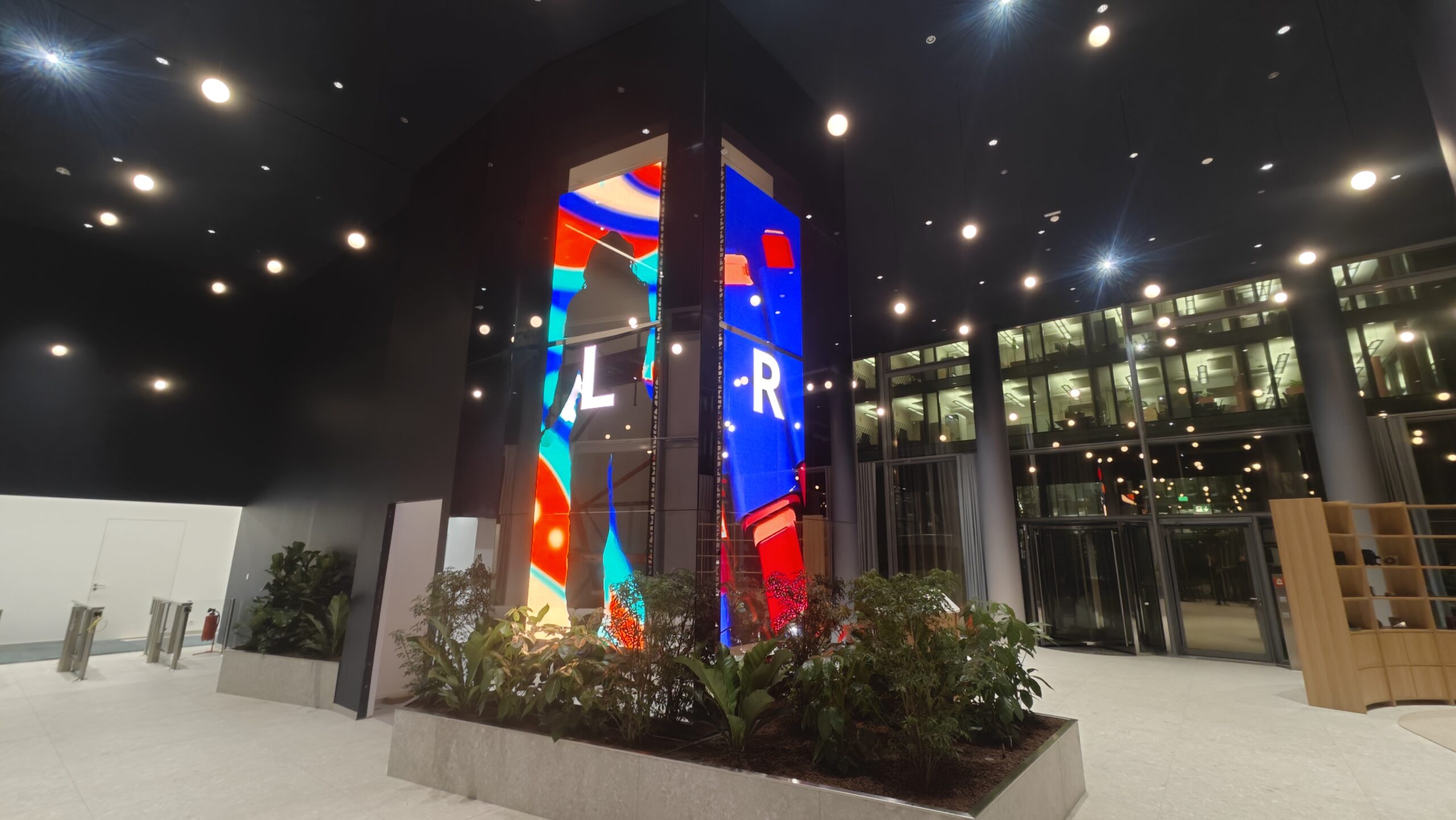Die innovative Lösung nutzt modernste transparent-LED-Technologie, bei der die Module auf glasklare Strukturen montiert sind. So entsteht ein beinahe schwebender Effekt, der sowohl tagsüber als auch bei Dunkelheit mit hoher Leuchtkraft und brillanter Darstellung überzeugt – und gleichzeitig Tageslicht durchlässt.